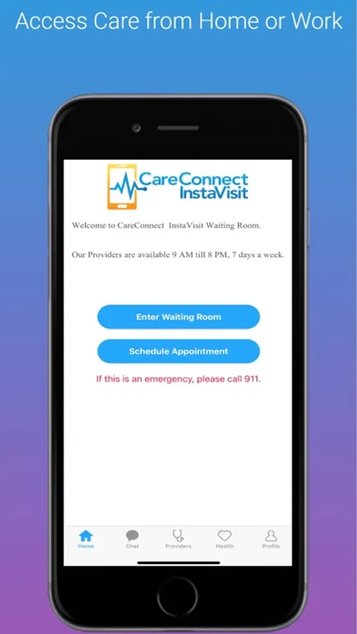 CareConnect InstaVisit is a safe, secure and simple way to get online diagnosis and treatment through video visit using your iPhone and iPad. Prescriptions if needed are sent directly to pharmacy of your choice. Get care without leaving home or work. CareConnect InstaVisit is available 9 AM till 8 PM, 7 days a week.