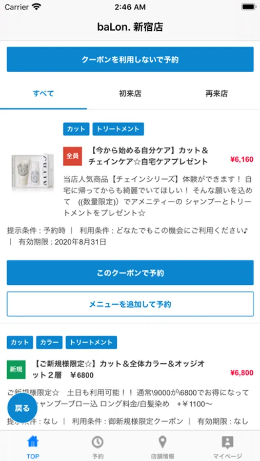 お得なクーポンが配信されます。ネット予約時にクーポン利用での予約も可能なので来店時もスムーズに施術頂けます。