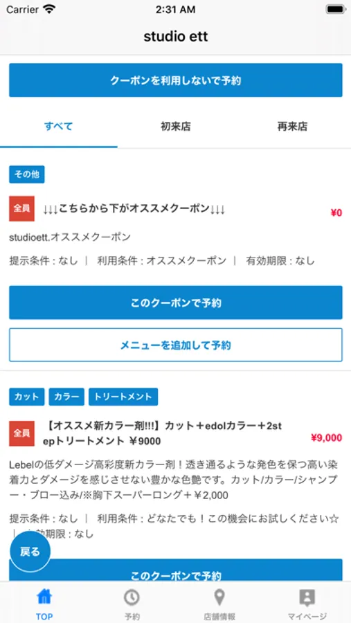 お得なクーポンが配信されます。ネット予約時にクーポン利用での予約も可能なので来店時もスムーズに施術頂けます。