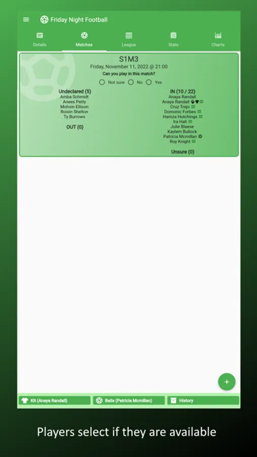 Looking to organize casual football games with your friends but always struggling to coordinate schedules, gear, and more? Look no further than Our League, the ultimate app for casual football groups! With Our League, you can easily schedule matches, track player availability, and manage your gear. Our AI team selector picks balanced teams for matches based on previous performance, so every game is fair and fun. Plus, with our app, you can track goals, assists, and more, and even vote for player of the match. And the best part? Our League is completely free! Whether you're a seasoned football pro or just looking to kick a ball around with your friends, Our League is the perfect tool for you. Download Our League today and start playing football like never before!