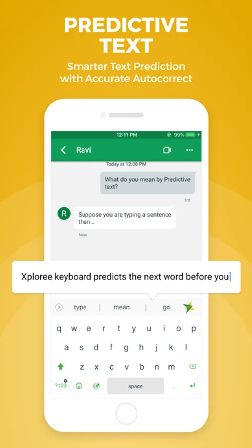 5) Predictive Text: Save time & efforts as Xploree learns your unique vocabulary and predicts words faster with accurate auto-correct.
