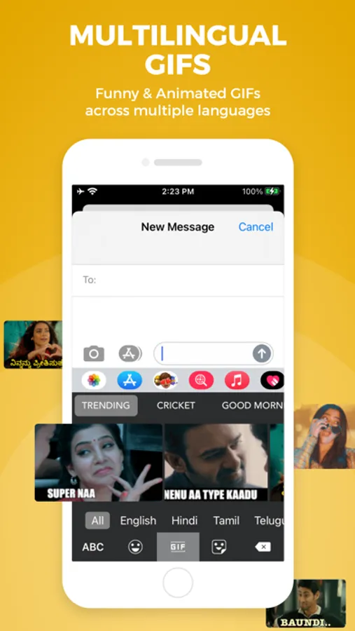1) Multilingual Gifs: Now express your emotions through funny & animated Gifs supported across multiple languages.
