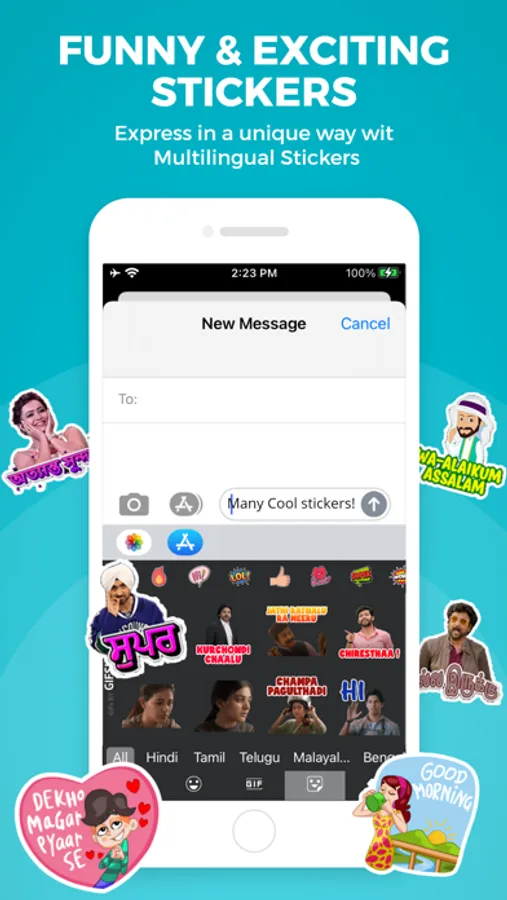 2) Multilingual Stickers: Funny and exciting stickers, helping you express in a unique way. Supports stickers across multiple languages.