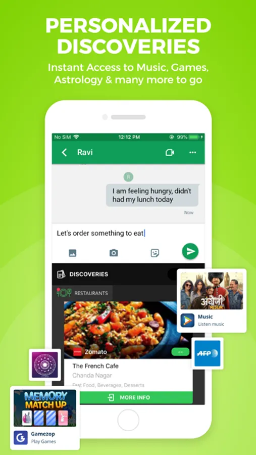 3) Discoveries: Through our intent engine get instant access to content in real-time across Music, Food, Astrology and many more.