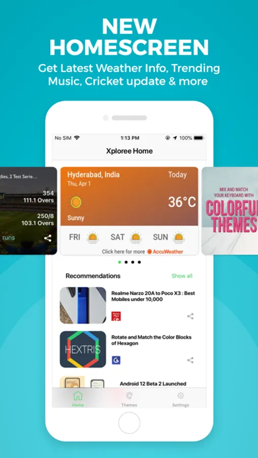 Experience the smoothest multilingual typing experience with the new Xploree Keyboard. Have engaging conversations using a vast library of multilingual Stickers, GIFs and over 1200 emojis at your disposal. It’s AI engine serves contextual content for dining, sports, music, astrology and weather while you are typing.
