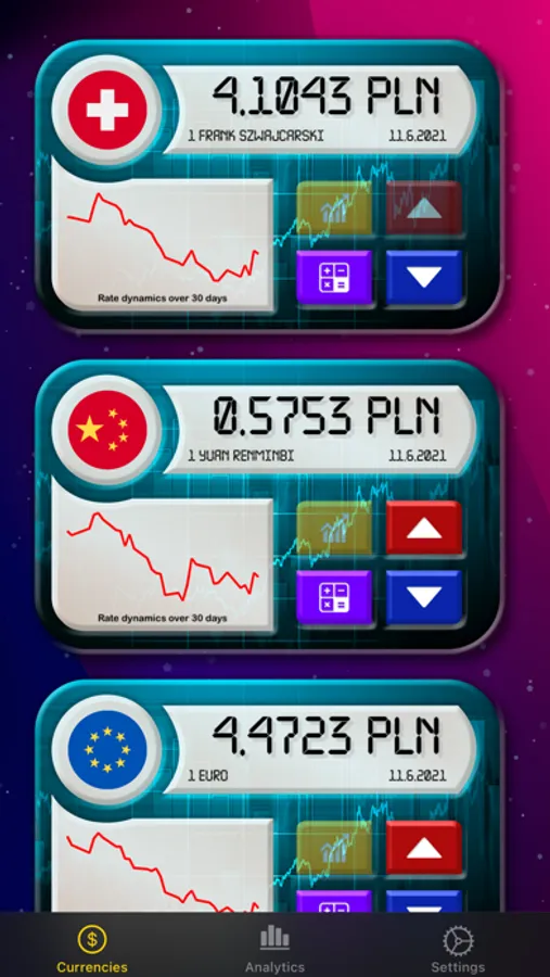 Now there is no need to go through the websites of banks and stock exchanges in search of current foreign exchange rates. There is no need to launch banking applications and wait until the connection is established and authorization is complete. All major exchange rates are now always at your fingertips and are literally in one click available in our FinCast app on your Apple devices (iPhone, iPad, Apple Watch and Apple TV). Be aware of the current economic situation in your country - follow the current data, as well as the history of changes in exchange rates.