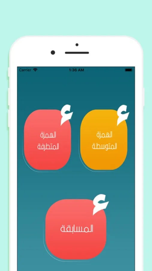 تطبيق تعليمي لتعلم الكتابة الصحيحة للهمزة في اللغة العربية.