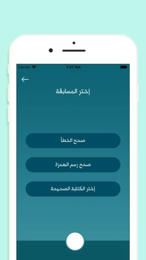 المسابقة حيث هدف المسابقة هو تعزيز التعلم ودعم فكرة تثبيت المعلومات لدى المتعلم حيث تنقسم إلى ثلاث أقسام: صحح الخطأ، صحح رسم الهمزة و إختر الكتابة الصحيحة