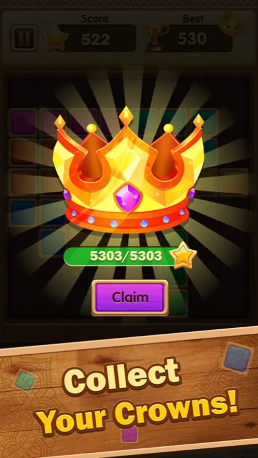 In particular, Block Puzzle: Collect Crowns gives you a race to collect honor crowns after each conquest of challenges with wooden blocks, you will immediately receive yourself a crown corresponding to the score you get at that play turn. Join this challenging race to become the owner of the most prestigious diamond crown in the kingdom of Block Puzzle: Collect Crowns.