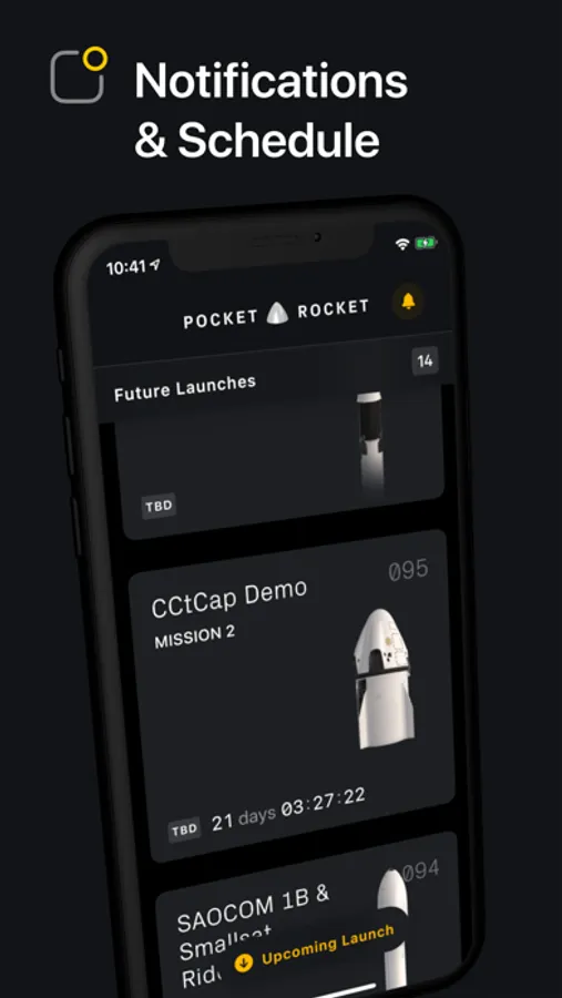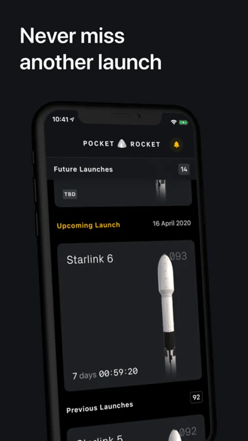 Pocket Rocket keeps track of all upcoming SpaceX rocket launches, and reminds you of when they're happening. Launch dates change constantly, so we act as your launch concierge to make sure you never miss out on witnessing history.