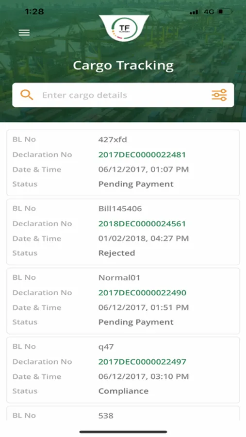 TFP Mobile application is integrated with the TFP platform seamlessly using open standards. It leverages on the account & registration information present in the TFP Platform. Users having access credentials on the TFP National Platform do not have to re-register and will have to just enable access. The application provides Traders/Importers/Exporters convenience of real-time tracking their document submissions (i.e. declarations, manifests, permits & licenses etc) & tariff/permits search. The application will provide other features like cargo pickup appointment booking, notifications, container tracking etc. progressively