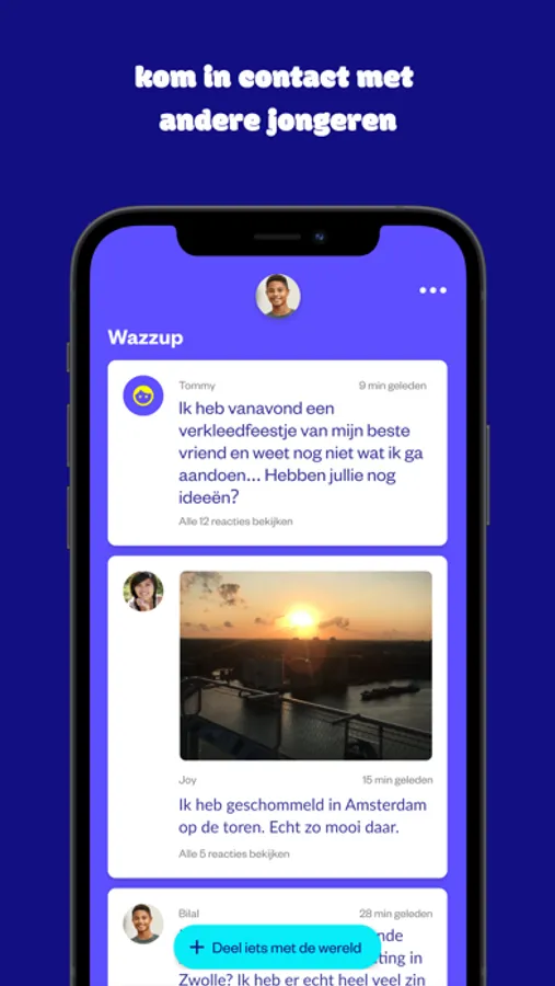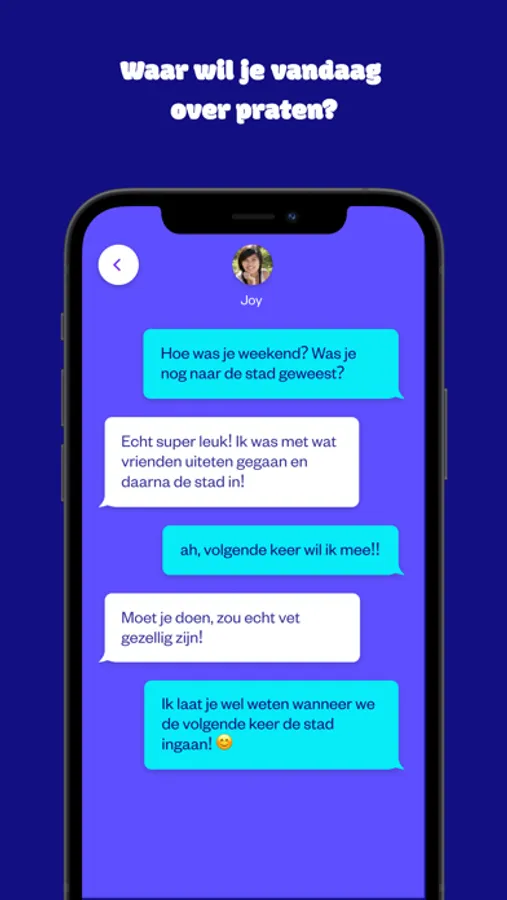 Met de Jong&Out app kun je eenvoudig in contact komen met andere jongeren. Door heel Nederland of juist bij jou in de buurt. Je kunt chatten in verschillende groepen of direct met elkaar via een privé chat. Zo kun je bijvoorbeeld vertellen over wat je hebt meegemaakt, wat je dwars zit of hoe het met je gaat. Het kan overal over gaan! Vaker met iemand chatten? Dan voeg je elkaar eenvoudig toe als vriend. Daarnaast vind je op de Jong&Out app alle informatie over de meetings die worden georganiseerd door heel Nederland. Van Maastricht tot Leeuwarden en van Amsterdam tot Enschede: op tientallen locaties in Nederland vinden maandelijks gezellige Jong&Out meetings plaats.