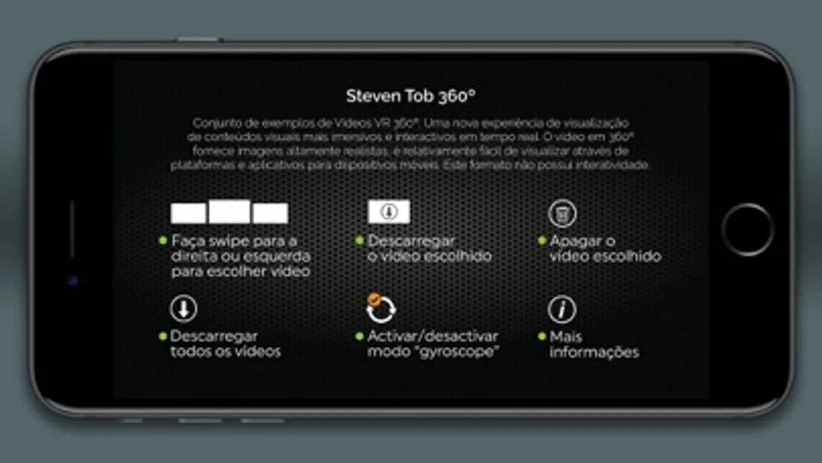 Conjunto de exemplos de Vídeos VR 360º. Uma nova experiência de visualização de conteúdos visuais mais imersivos e interactivos em tempo real. O vídeo em 360º fornece imagens altamente realistas, é relativamente fácil de visualizar através de plataformas e aplicativos para dispositivos móveis. Este formato não possui interatividade.