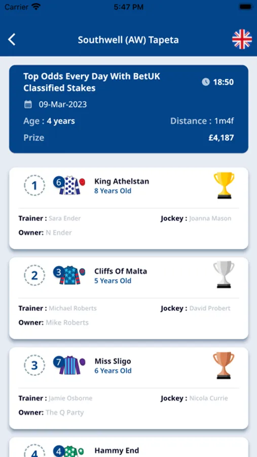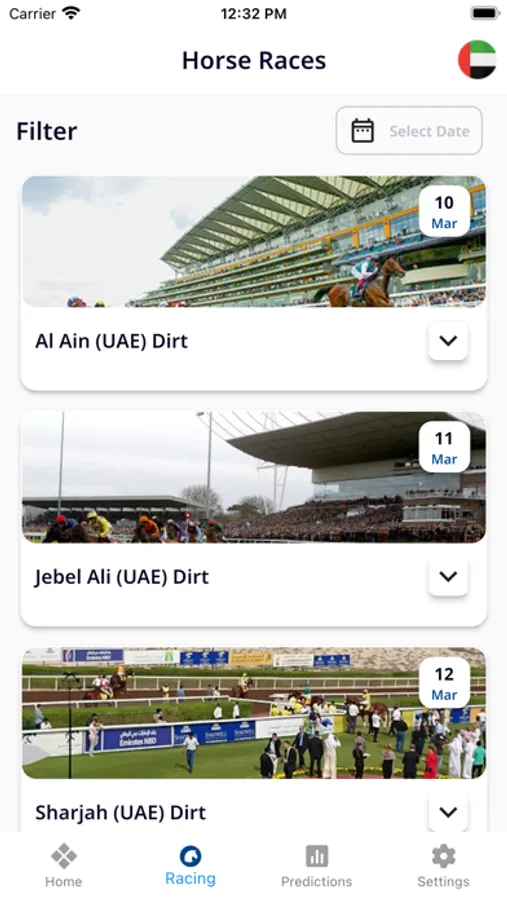 UAE's first mobile app covers all continents. You can find real time results and races in this app. Detailed information about Horses their Trainers, Jockeys. Previous owners, Winning. All you want is available in this app. App is free to use for general public,
