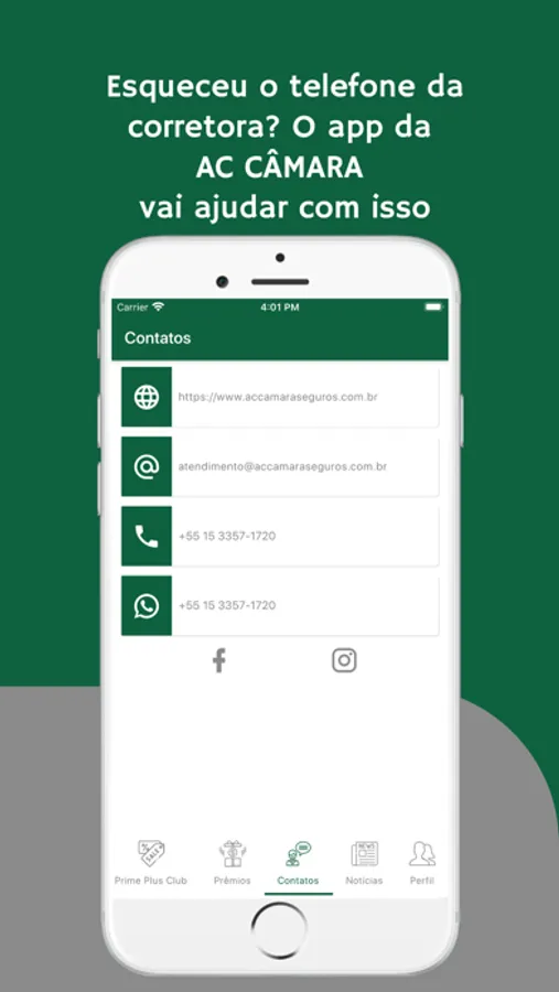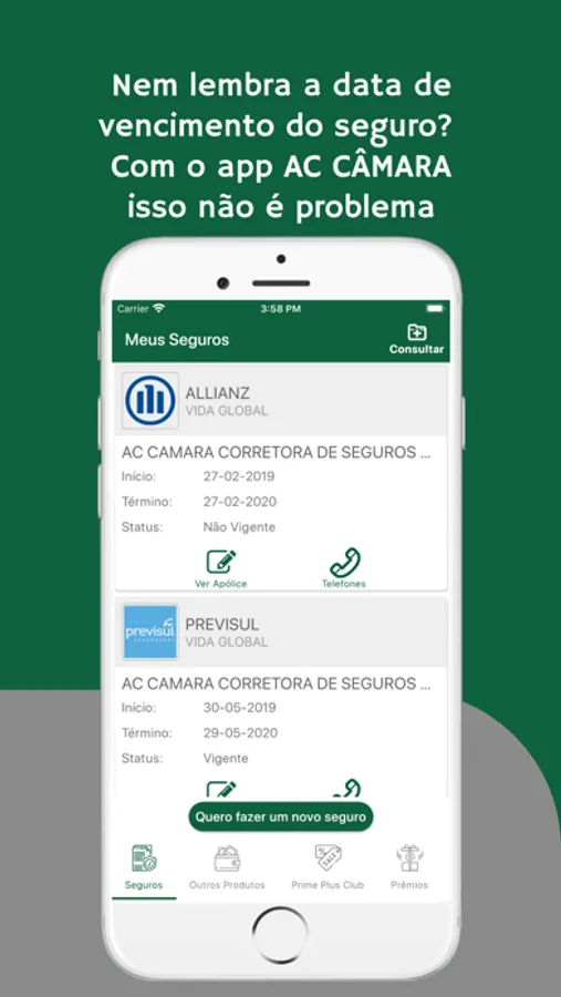 * contactar seguradora e corretor diretamente pelo app (e-mail, telefone, site, whatsapp, maps);