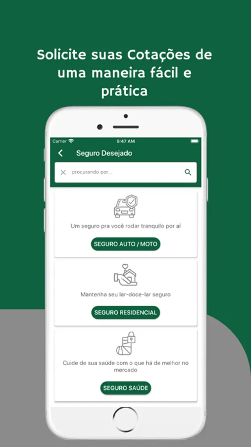 * fazer cotação de seguro auto, seguro de vida individual, seguro residencial, seguro pet, seguro viagem, seguro agrícola e seguro para celular;