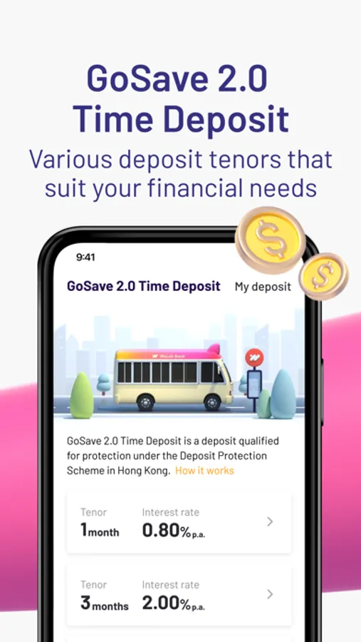 Not only do we provide you the security of a bank regulated by the Hong Kong Monetary Authority (BTW your money is protected under the Deposit Protection Scheme up to HKD500,000#), we also deliver a simple, intuitive experience centered around you - the way modern banking should be!