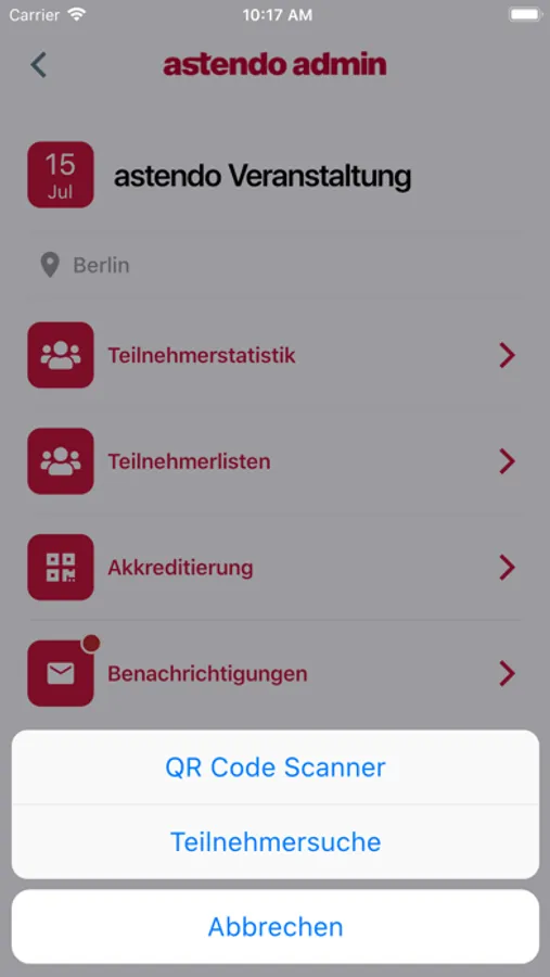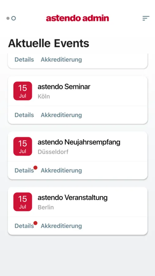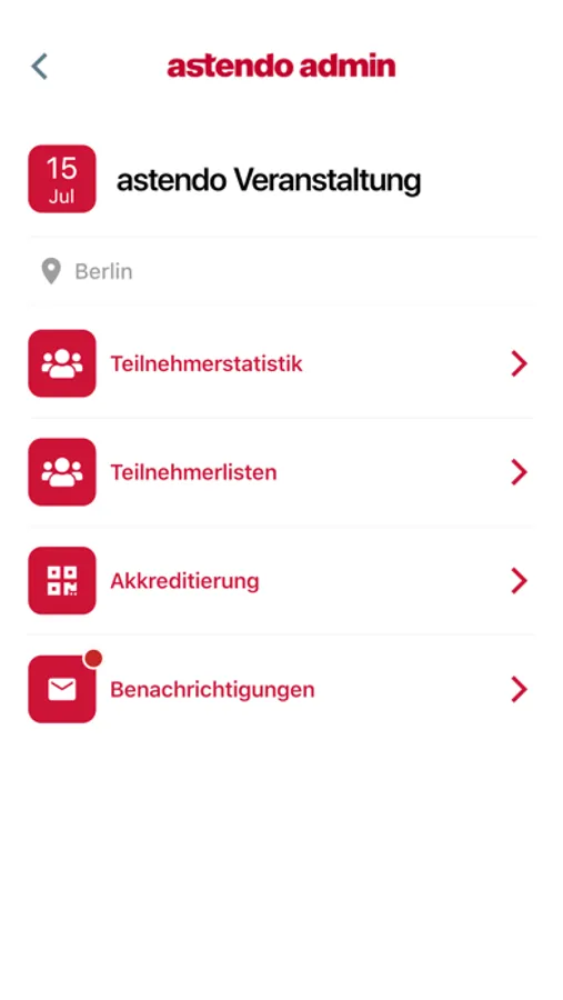 astendo Admin ist die App für das mobile Veranstaltungsmanagement von Kunden der astendo GmbH, die den astendo eventManager nutzen. Mit dem eventManager unterstützt astendo erfolgreich seit Jahren viele Kunden bei der gesamten Abwicklung von Veranstaltungen – von der Planung über ein Online-Teilnehmermanagement bis hin zur Akkreditierung vor Ort. Die adminApp ermöglicht nun zusätzlich den mobilen Zugriff auf Veranstaltungs- und Teilnehmerinformationen und vervollständigt unseren Event-Service. Kunden können nun Ihre Veranstaltungen von unterwegs aus betreuen, aktuelle Benachrichtigungen verschicken und Informationen der Gäste einsehen. Auch die Akkreditierung und Auswertung von Veranstaltungen ist mit der App möglich. Besonderes Feature ist eine Chat-Funktion.