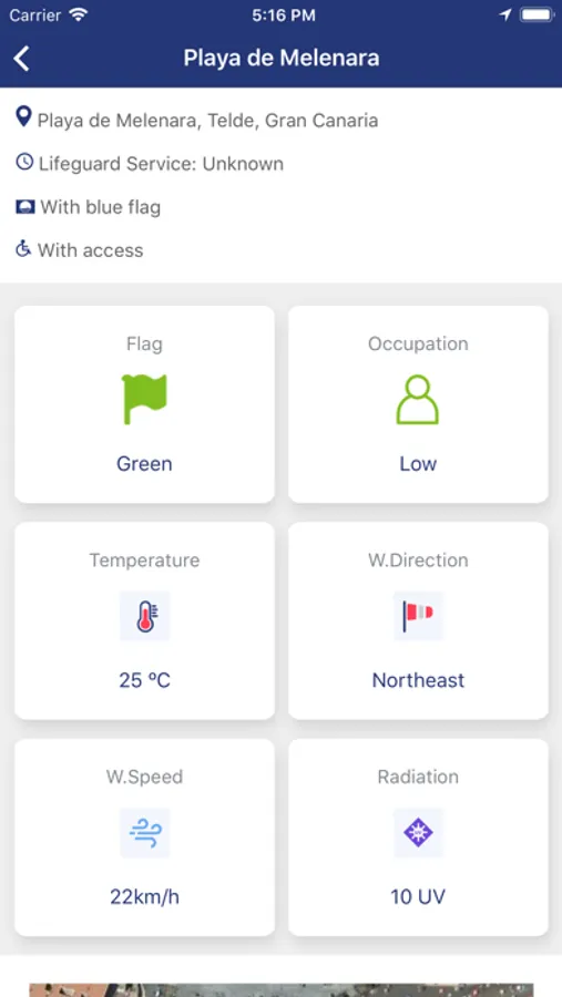Con esta aplicación podrás comprobar diferentes datos de interés de tus playas cercanas como son: