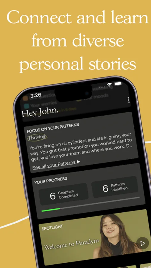 The Paradym process includes original written, audio & video content exclusive to Paradym. Receive personalized guidance to help you break negative patterns and the tools to help identify your unique emotional patterns. Our emotional well being programme includes guided exercises and daily reflections designed to fit into 10 minute chunks. Plus, receive the support from a nurturing online community sharing their personal experiences