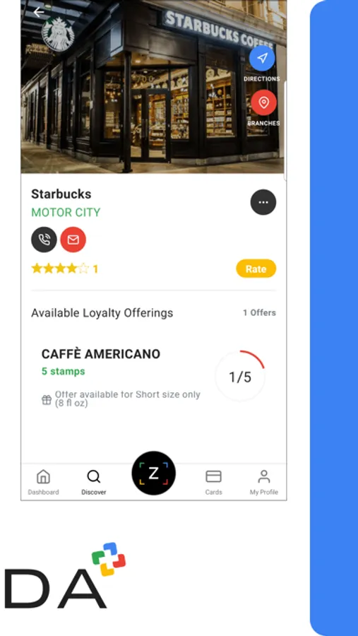 The user can click on the ZEEDA Black Button any time he visits a shop. The shop will be listed on top according to its geolocation proximity and by clicking on that shop, the user can easily stamp according to the offers available on that shop.