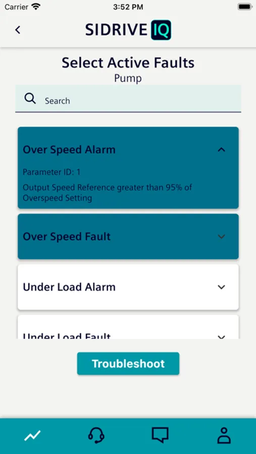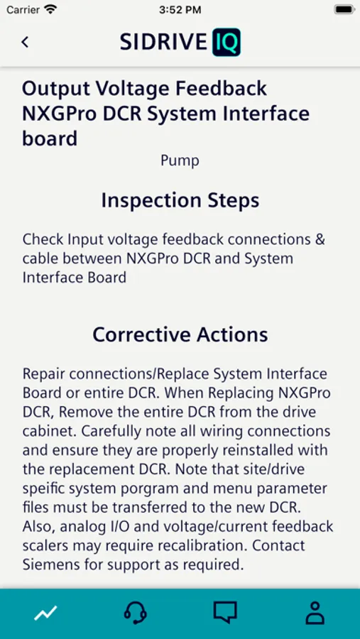 SIDRIVE IQ Troubleshoot gives you instant access to Siemens' years of accumulated drive knowledge, helping you more efficiently and accurately diagnose any problems that arise in the field. The App provides diagnostic instructions with video tutorials and component images to help you understand how to fix the issue(s). In addition, the App makes it easier than ever to contact Siemens Customer Service for additional assistance.
