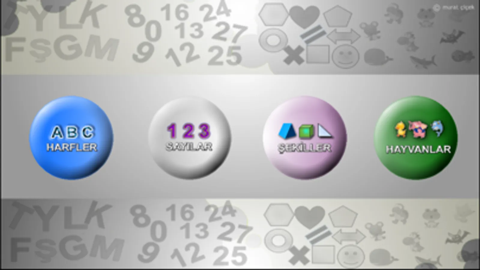 Dört kategoriden oluşan bir oyundur (Harfler,Sayılar,Şekiller,Hayvanlar)