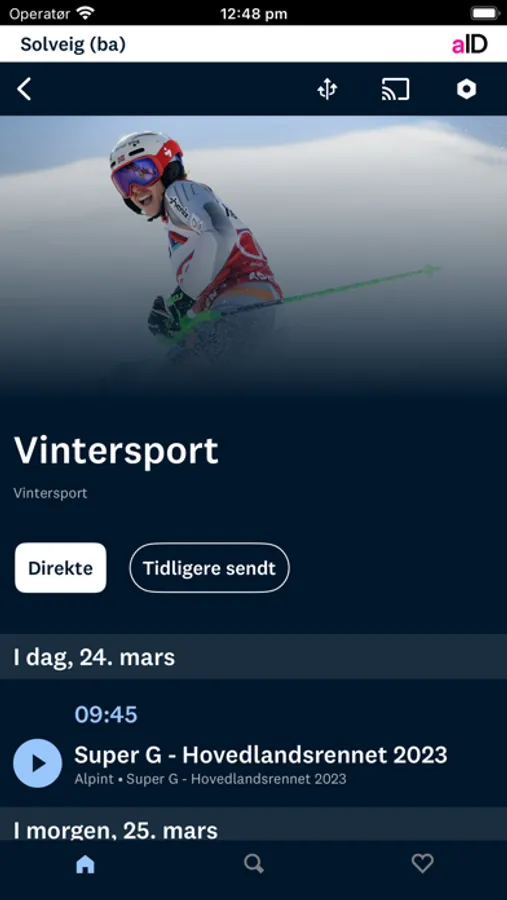 Direktesport er tilgjengelig på mobil, nettbrett, datamaskin i tillegg til app.