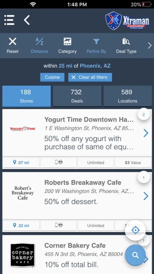Note: Only registered members can use this app and access these deals. For questions, contact us at customerservice@xtramanfundraising.com.