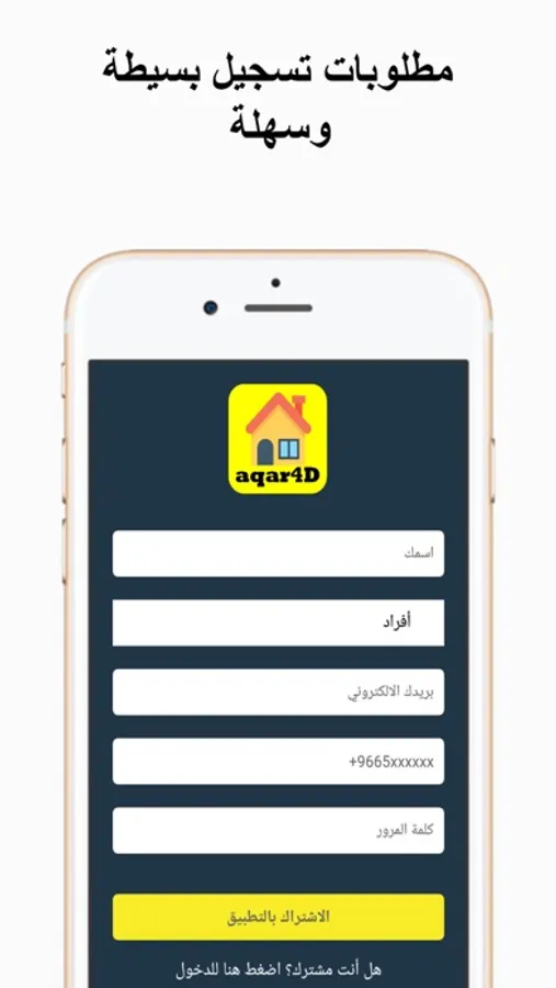 تطبيق Aqar4d هو تطبيق عقاري جديد مبسط يخدم أصحاب العقارات و أصحاب المكاتب العقارية لتحقيق أهدافهم والاعلان بسهولة وبساطة بدون تعقيد.