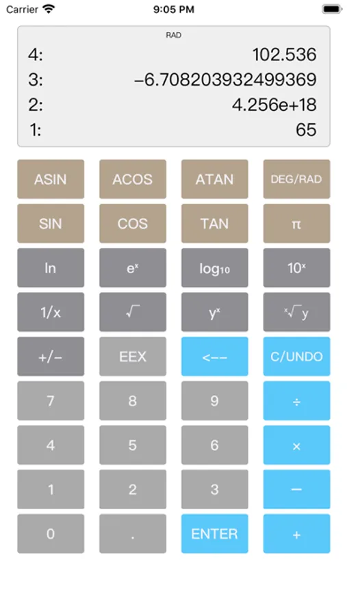 RPN scientific calculator benefiting from the major scientific functions visible on the screen.