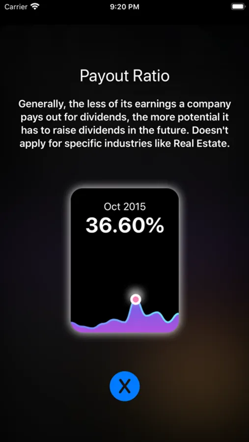 - Chart view of dividend related factors like yield and payout ratio for stocks