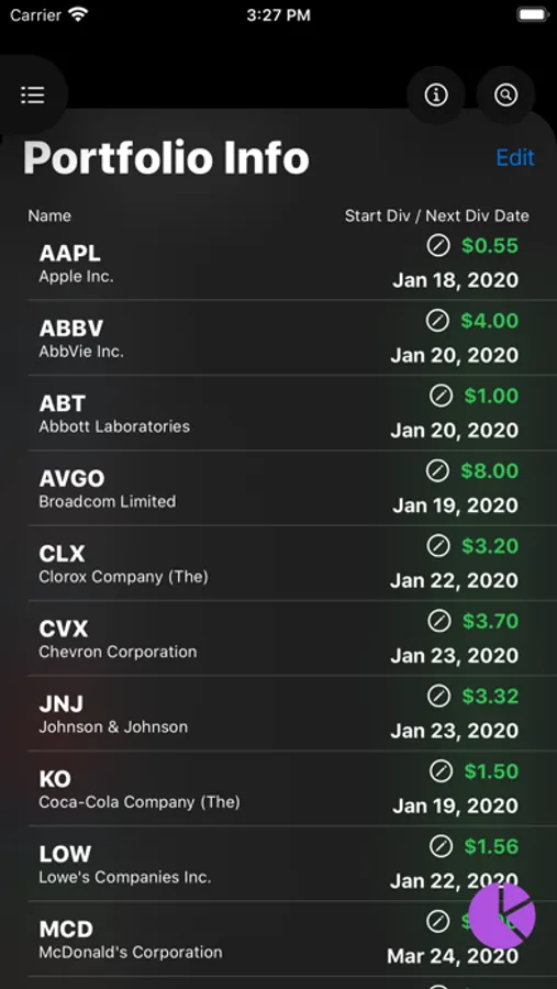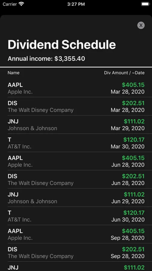 - Minimalistic view of all your stock's current dividend amounts and dividend growth