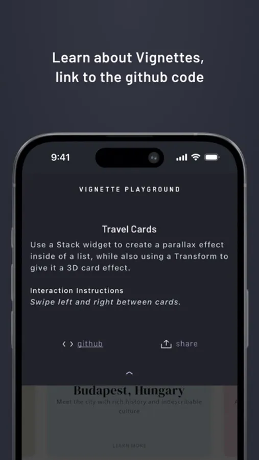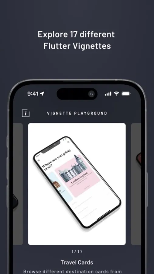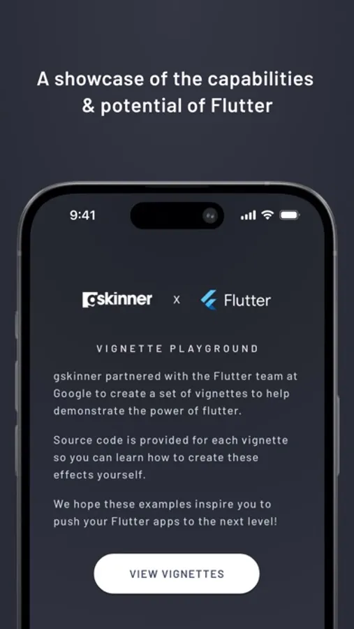 A set of 17 unique "Vignettes" that showcase the power and flexibility of iOS apps made with Flutter.