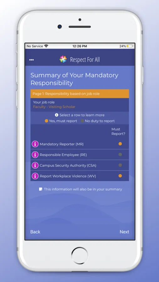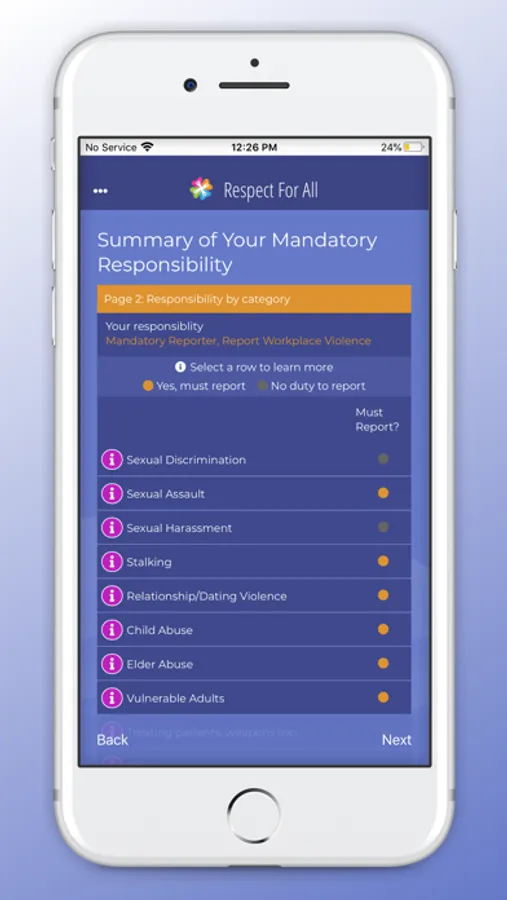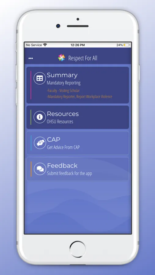 This app is designed for OHSU students, faculty, and staff in conjunction with the Respect for All training. Sexual misconduct can occur in many forms, including dating violence, stalking, harassment, or assault. This app will help define these and provide resources. In addition, it will help you understand your rights, options, and resources, as well as identify the responsibilities of OHSU students, faculty, and staff.