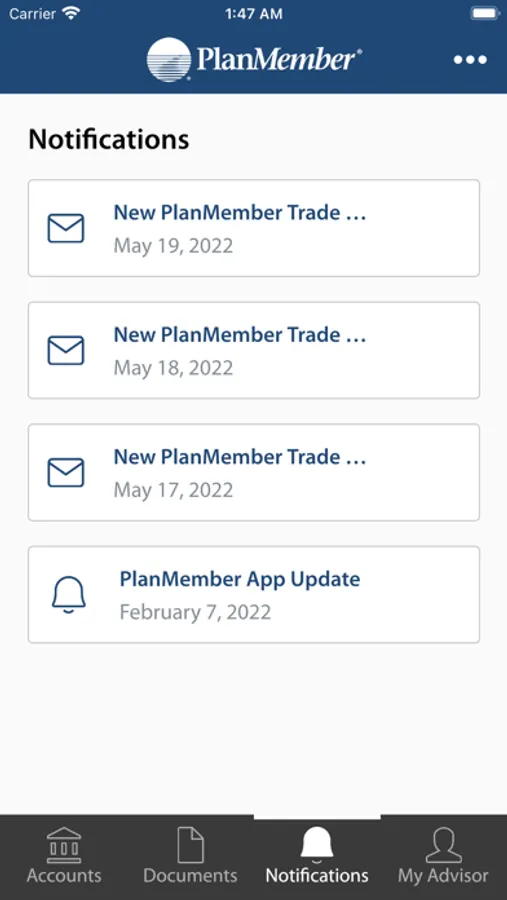 *Notifications feature, including trade confirmations and important messages from PlanMember