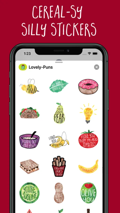 Some of the stickers include: BEE mine, we were MINT to be, DONUT forget I love you, Let's TACO bout you, we make a great PEAR, I CEREALsly love you, I find you apPEELing, I love you from my head TOMATOES, I love you SMORE, we have CHEMISTRY together, I only have FRIES for you and so many more!
