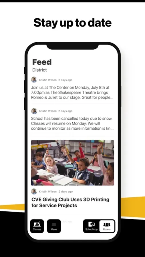 In the Live Feed is where you’ll find updates from the administration about what’s going on in the district right now. Whether that’s celebrating a student’s success, or reminding you about an upcoming deadline.