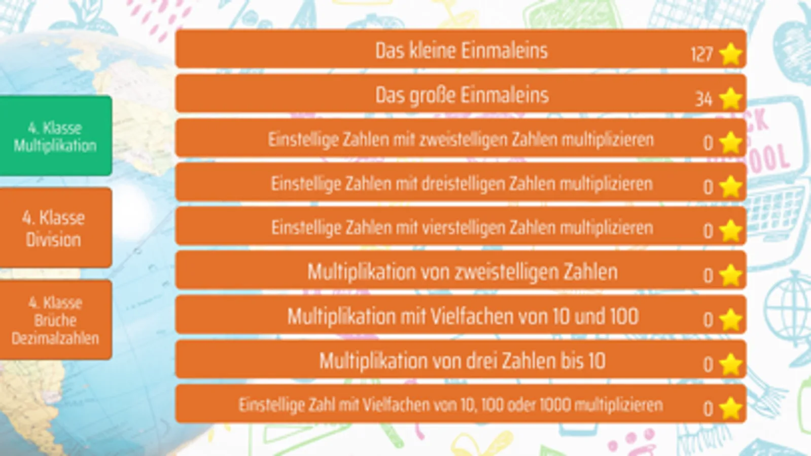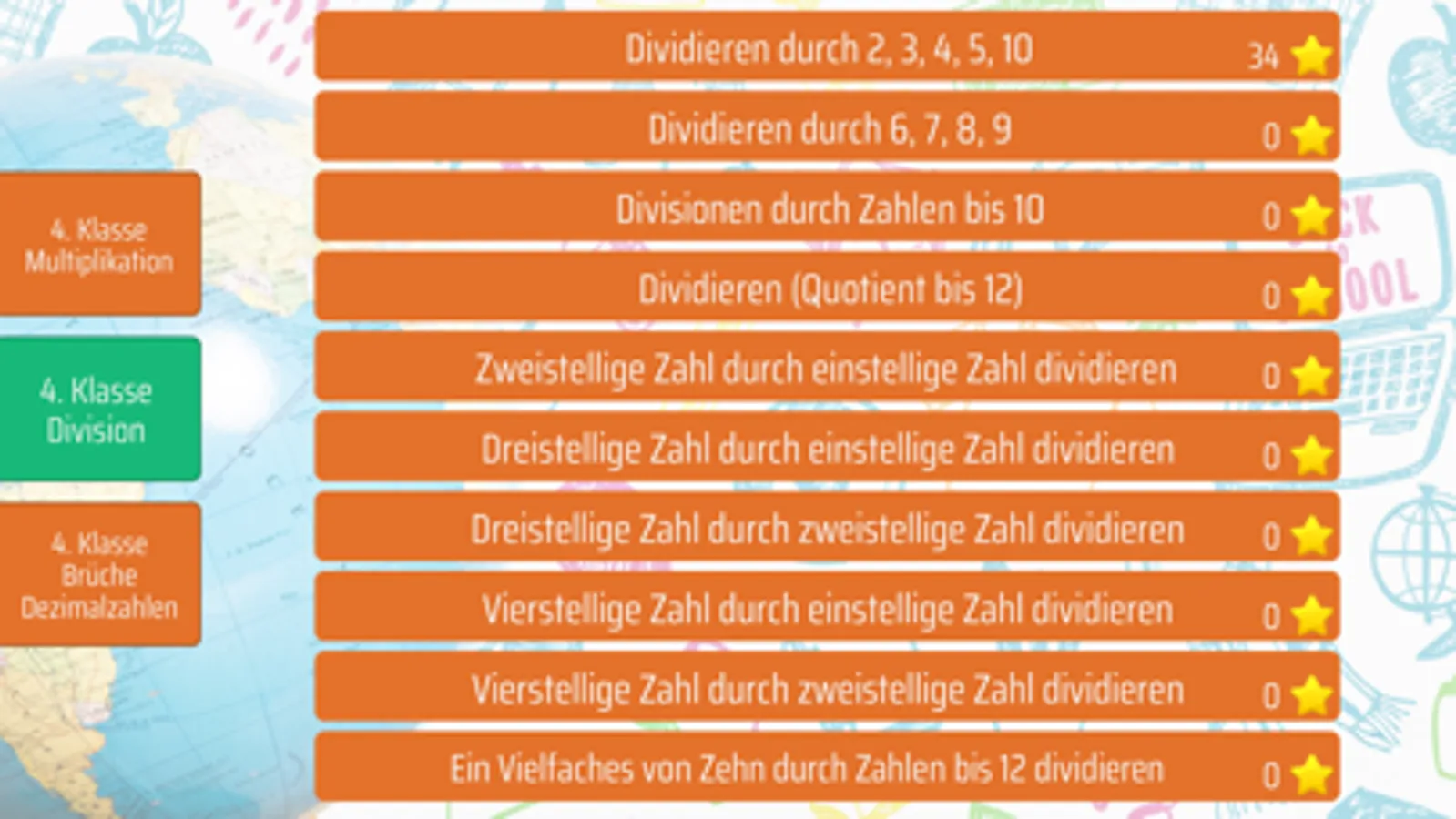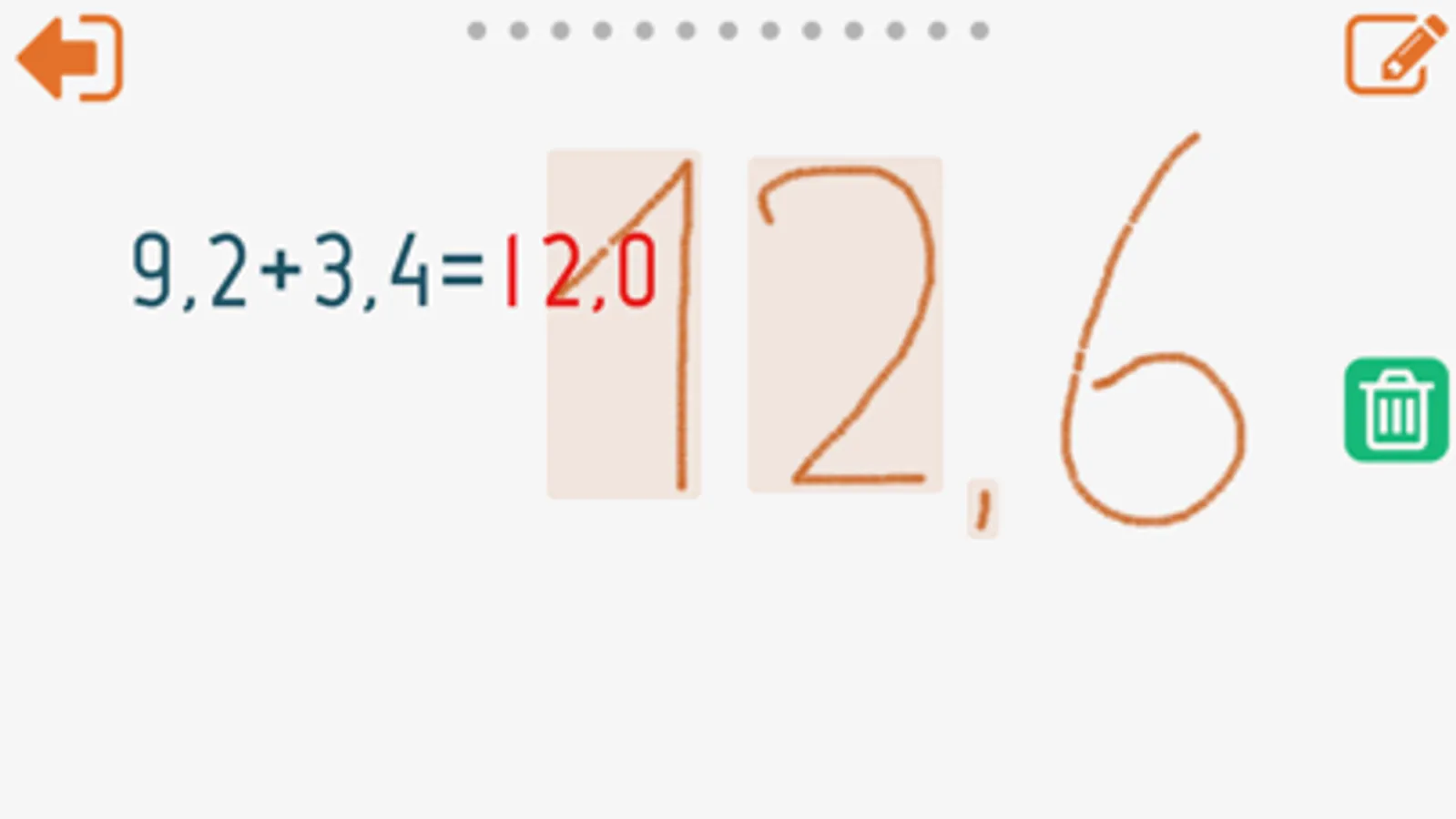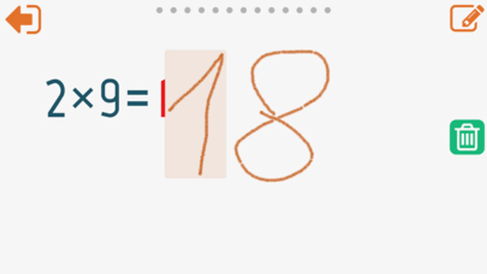 Mathe spielerisch lernen und üben. Dank handschriftlicher Zahleneingabe ist es möglich, das Ergebnis einfach mit dem Finger auf den Bildschirm zu schreiben. Folgende Aufgabenbereiche stehen zur Verfügung: