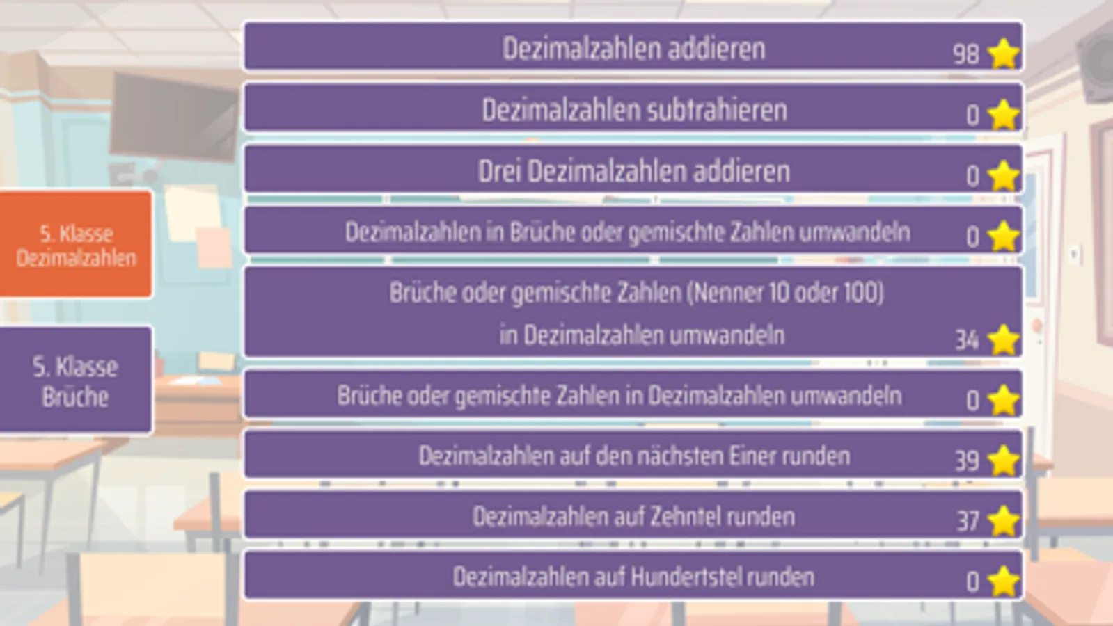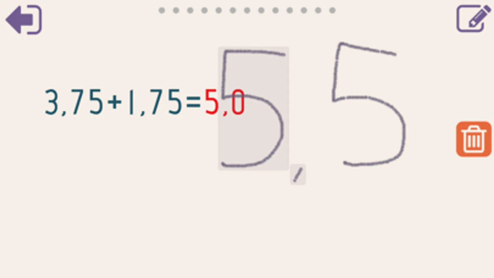 Mathe spielerisch lernen und üben. Dank handschriftlicher Zahleneingabe ist es möglich, das Ergebnis einfach mit dem Finger auf den Bildschirm zu schreiben. Folgende Aufgabenbereiche stehen zur Verfügung: