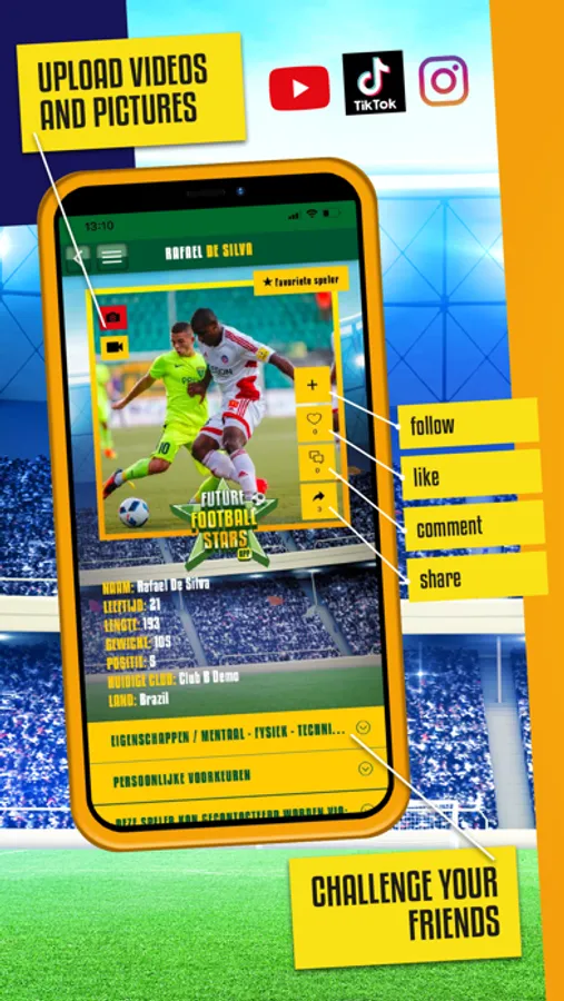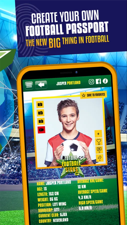 Stel jezelf en je voetbal profiel voor aan teams, managers en het grote publiek via de Football Future Stars app !