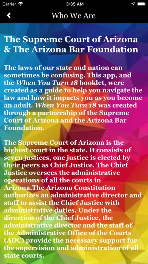 If you’re almost 18 your world is about to change, legally. When You Turn 18 is an informational app to inform you about all the legal ways your life will change. When you become an adult, you inherit a lot of new responsibilities under the law. Some of these new responsibilities are straightforward, like the ability to vote, others are much more complicated. When You Turn 18 is the app that can help you understand the law without you having to find out the hard way.