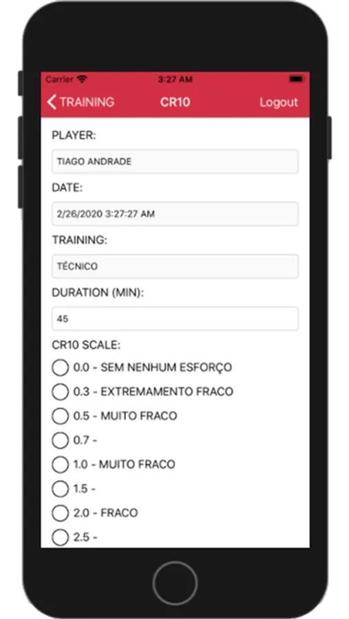 App desenvolvido para gerenciar o esforço percebido, controle de cargas de treinamento, recuperação e dor física em atletas de diferentes esportes ou equipes.