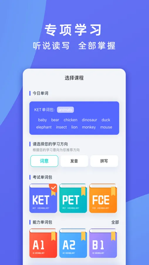 I+1,由北美外教团队精心编写教学课程,围绕考试、欧标等内容挑选高频词汇。词汇学习更专业。