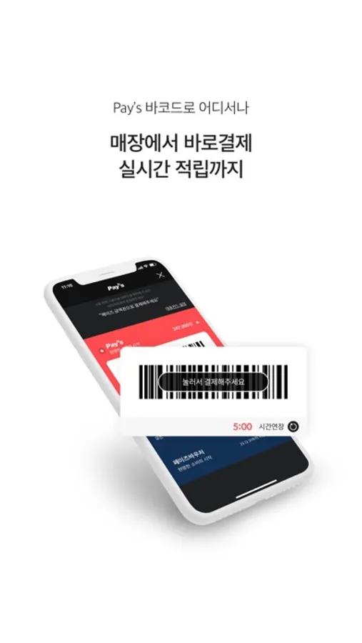 앱에서 구매할 상품을 선택하고 '바로결제'를 선택하면, 매장 포스에서 바코드 스캔 결제까지 3초면 끝!