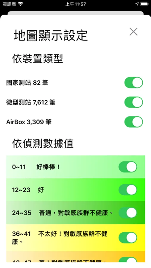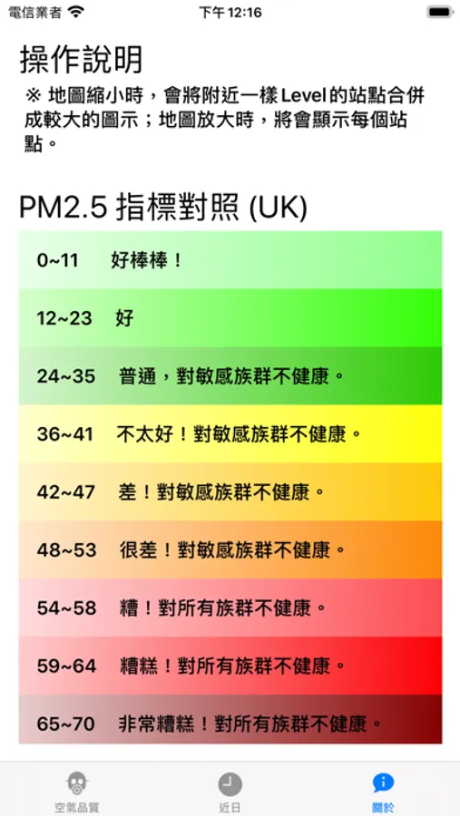 搜集大量全台pm2.5即時資訊,讓您隨時知道空氣品質。