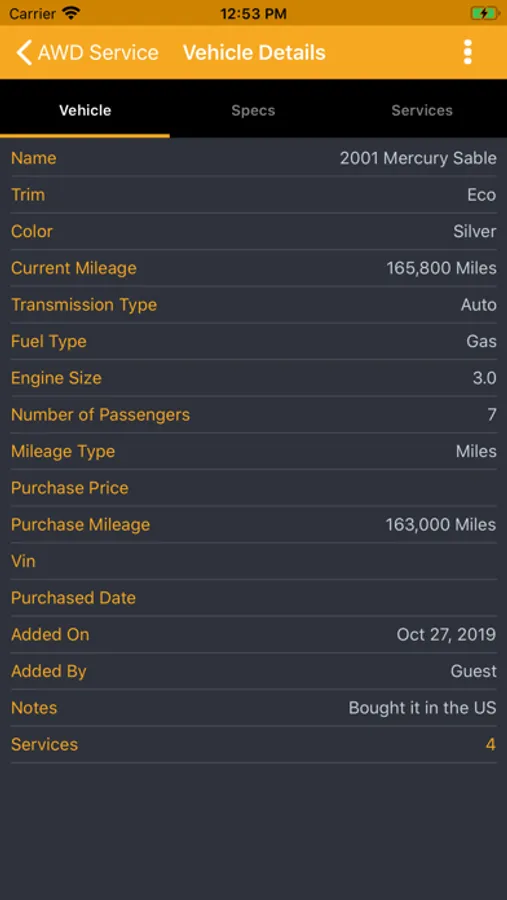 No problem, once you create a vehicle in AWD Service, just add all the specs you need, when you need them.