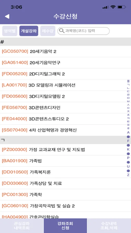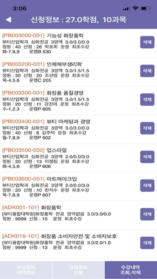 - PC용 웹 수강신청과 중복하여 사용이 불가능합니다.