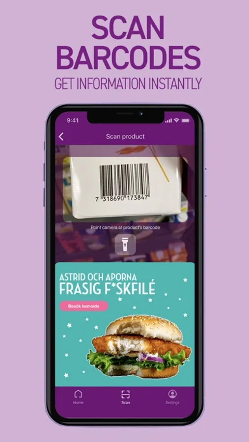 By scanning a product's barcode, information about the product shows directly on your mobile screen.