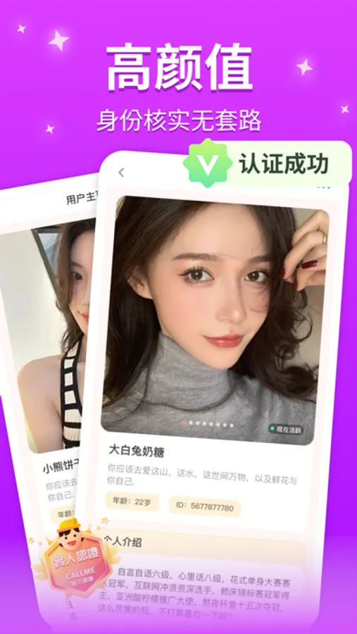 支持文字、视频、语音聊天通话、直播等多种互动方式,真人实名认证,放心靠谱的陌生人交友软件。